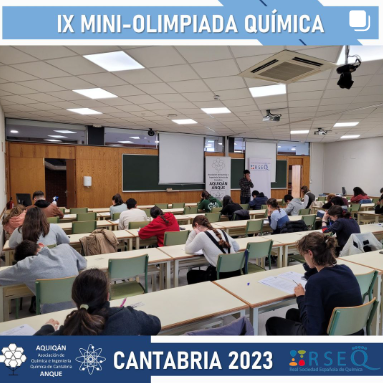 La IX Miniolimpiada de Química de Cantabria organizada por la STCAN y dirigida a alumnos de 3º y 4º de ESO e celebró el viernes día 12 de mayo en la Escuela Técnica Superior de Ingenieros Industriales y de Telecomunicación (ETSIIT), Campus de las Llamas, Avda. de los Castros s/n, Santander.