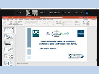 Aitor Marcos Madrazo imparte la charla Desarrollo de electrodos de membrana sostenibles para electro reducción de CO2, en el marco de IQ-FORUM Jornadas de jóvenes investigadores, organizado por la RSEQ. El evento tuvo lugar el 26 de enero de 2020.